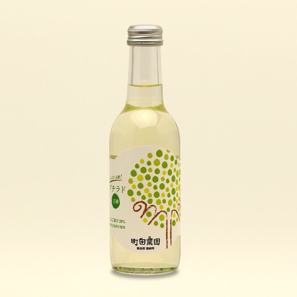 「プチラド(王林)20本入り」は、甘さ控えめでさっぱりとした味わいの、りんごサイダーです。果汁20%を使用し、香料や着色料は一切使用していないため、素材の美味しさをそのまま楽しむことができます。